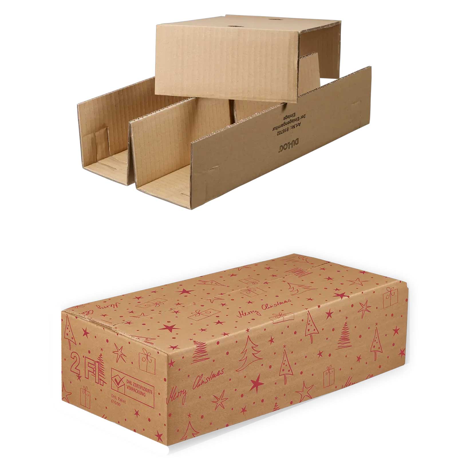 Flaschenversandkarton Weihnachten 2er Set DU-LOG DHL PTZ 25 Stück